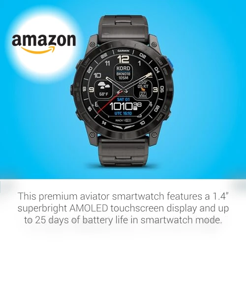 Ever find yourself fumbling in the dark or squinting at your watch mid-flight? The Garmin D2™ Mach 1 Pro has your back—literally, with its built-in flashlight that's ready to light up your life (or cockpit) at a moment's notice. And let's talk about that screen: a dazzling 1.4” AMOLED touchscreen that's so bright, you might need sunglasses. Whether you're navigating the skies with aviation weather and airport info at your fingertips, or just trying to remember where you parked your car with phone-free maps, this watch does it all. Plus, it's like having a personal trainer and doctor on your wrist, thanks to 24/7 health monitoring and a smorgasbord of over 30 sports apps.