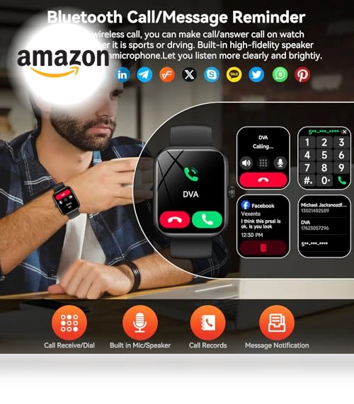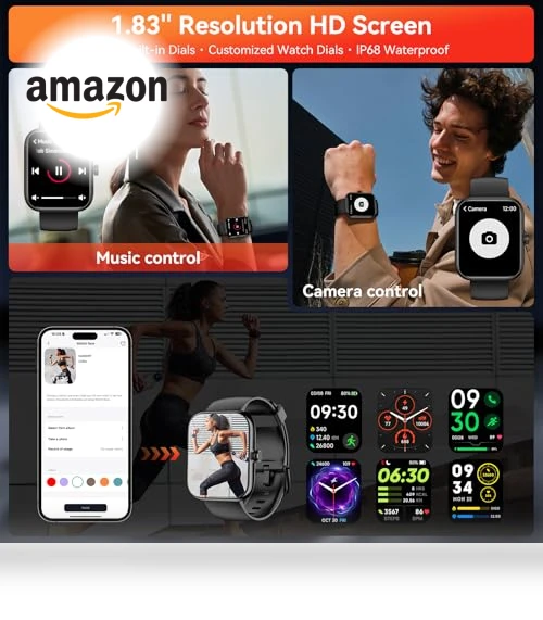 Ever wished your wrist could do more than just tell time? Meet your new sidekick—a smartwatch that's as stylish as it is smart. Imagine answering calls or reading texts without digging for your phone (because let's be honest, who hasn't lost their phone in their own bag?). Thanks to Bluetooth call and message notifications, it's all possible. And with Alexa built-in, you've got a personal assistant ready to spill the tea on news, weather, or even remind you it's time to hit the gym. Speaking of gym, this watch doesn't just count steps; it's like having a personal trainer with 24/7 health tracking that keeps an eye on your heart rate, stress, and how well you're sleeping (or not). Whether you're running, lifting, or pretending to lift, 100+ sports modes have got you covered. The 1.83" HD touch screen is so crisp, you'll want to show off your customizable dials. Plus, it's IP68 waterproof, because showers and accidental swims happen. And for the cherry on top, control your camera, manage music, and get weather updates—because why not?