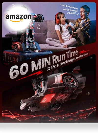 - 2-in-1 robot toy car with sound & light effects