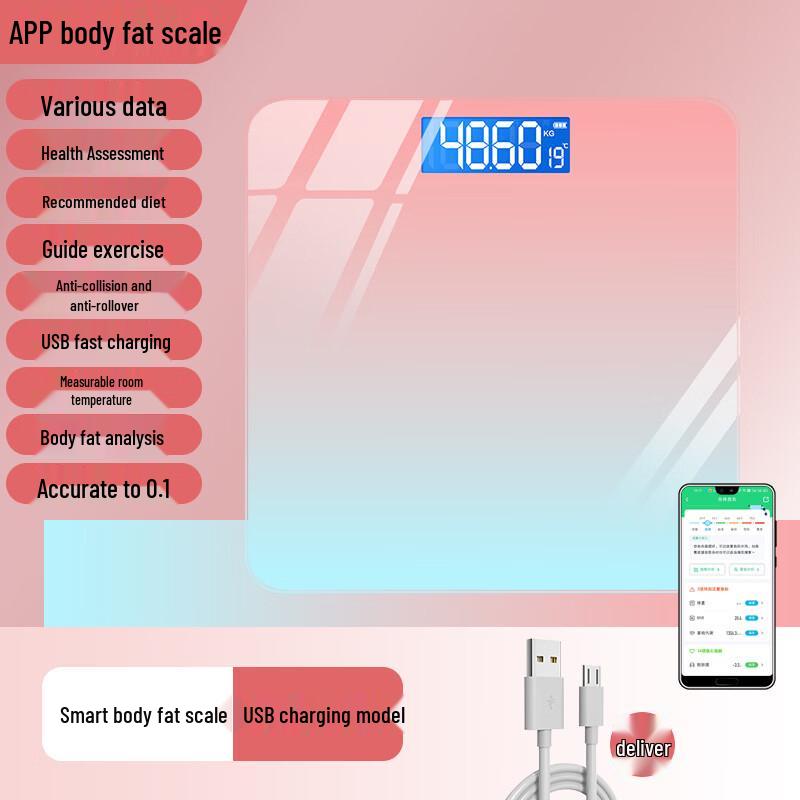 Jinmiao CN version, Rechargeable Lithium-ion, LED Smart Bluetooth Rechargeable Body Fat Scale