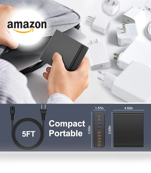 Let's talk about the 10-Port USB C Charging Station from Aexhend—because who hasn't dreamed of charging everything at once without turning their desk into a spaghetti junction of cables? 🚀 This little powerhouse comes with 5 USB C and 5 USB A ports, meaning your laptop, phone, tablet, and whatever else you've got can all juice up simultaneously. Thanks to the GaN III generation chip technology, it's not just fast; it's smarter, cooler, and way more efficient than those old-school chargers that heat up like a toaster.