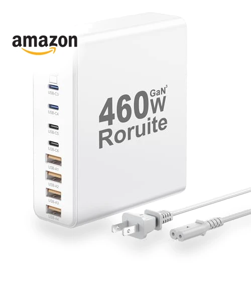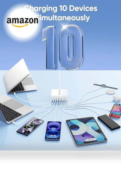 Meet the 10-Port USB C Charging Station by Roruite – your new best friend in the chaotic world of device charging. With a mix of 6 USB-C and 4 USB-A ports, this powerhouse delivers a whopping 400W total output. Imagine charging your phone, tablet, laptop, and maybe even your friend's gadgets all at once. It's like a party for your devices, and everyone's invited (no outlet hogging here).