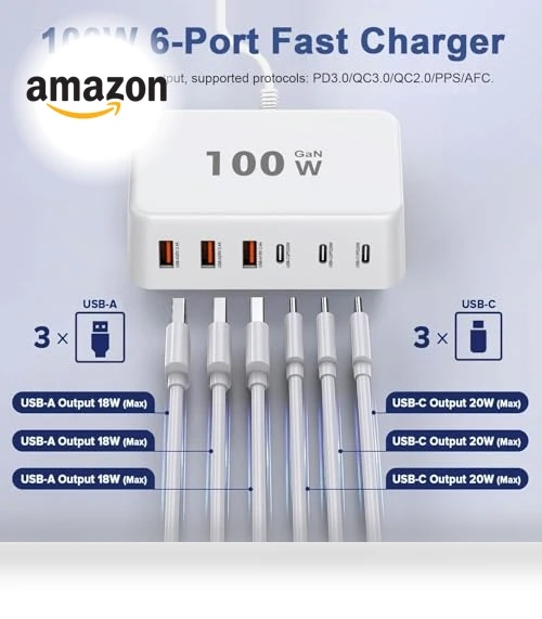 🚀 Power Up Your Devices with the 100W GaN 6 Port USB C Charging Station 🚀