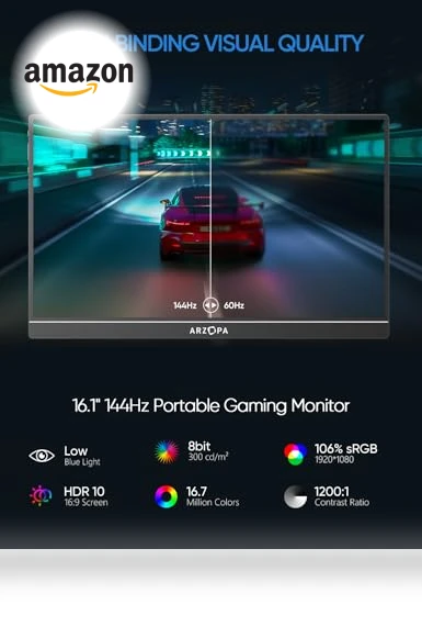 Meet the ARZOPA 16.1'' 144Hz Portable Gaming Monitor—your new best friend whether you're deep into gaming or hustling through work. Why? Because it packs a 144Hz ultra-high refresh rate that makes everything smoother than your favorite butter (and yes, that includes those frantic gaming moments). Plus, with a 106% sRGB IPS screen, colors pop and details are so crisp, you'll feel like you're seeing in HD for the first time. All at 1080P FHD resolution, because why settle for less?
