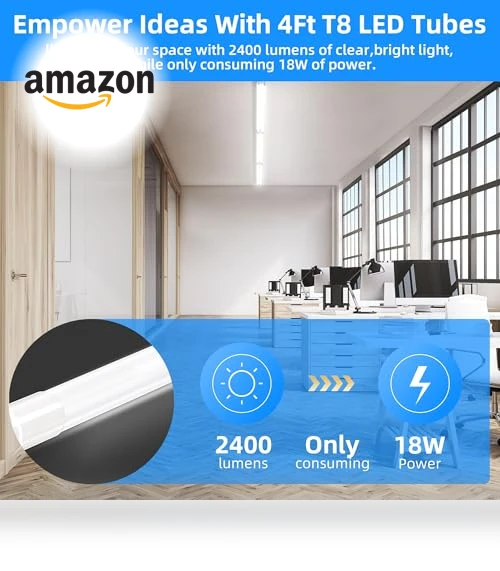 Ready to give your space a glow-up? Meet the hykolity 20 Pack 4FT LED T8 Hybrid Light Tubes. These bad boys pump out a whopping 2400 lumens of crisp, daylight white light (that's 5000K for the tech-savvy), perfect for anything from your dim garage to a bustling retail spot. And here's the kicker: they slash your energy bill by up to 55% compared to those old-school fluorescent tubes. Talk about bright ideas!