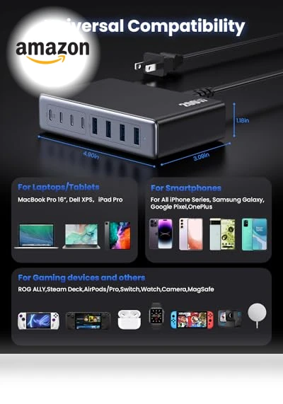 - special_features: Travel, 200w 8 ports QC4.0 Gan4 usb c charger block, 65W fast charging for laptop, Lightweight, Universal Compatibility, Charging Indicator, Short Circuit Protection