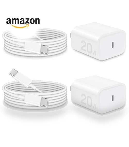 - What's in the Box: 2 x 20W USB C Charger, 2 x 6Ft USB-C to USB-C Cord