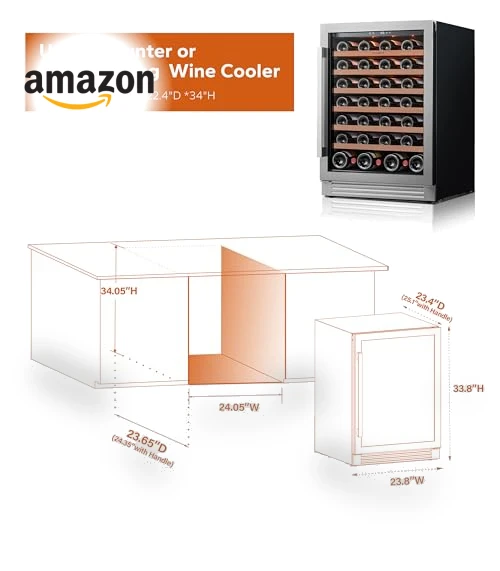 Designed to breathe easy with a front ventilation grille, it’s happy whether it’s built-in or standing free. Plus, the sleek, modern design with a brushed stainless steel frame laughs in the face of fingerprints and scratches, making it the chicest addition to your home or bar. Because your wine deserves to be seen, not hidden.