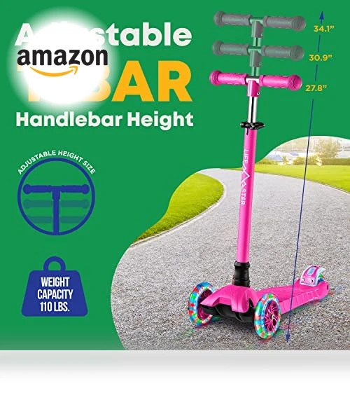 Lifemaster LIFSCTPIK 3 Wheel Kick Scooter with LED Lights: LED wheel lights that illuminate when rolling