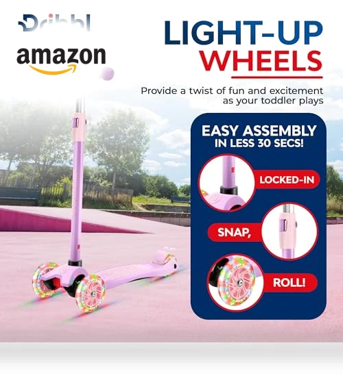 Dribbl DBKS02 3-Wheel Kids Scooter: Smooth and safe riding experience with durable ABEC-7 bearings and multi-flashing lights