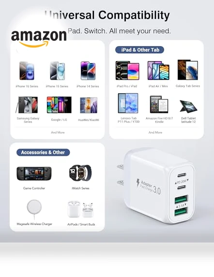 Meet the 4 Port Fast Charging Block—your new best friend for keeping all your gadgets juiced up without the hassle. It’s like a power buffet with 40W spread across 4 ports (2 USB-C + 2 USB-A), so your iPhone, iPad, AirPods, and whatever else you’ve got can all charge at once, and fast. Thanks to QC+PD 3.0 tech, it’s up to 3X quicker than those sluggish 5W chargers. (Seriously, why are those still a thing?)