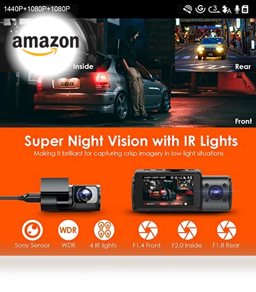 Ever wish you had eyes in the back of your head? Well, the N4 dash cam gets you pretty close with its Triple Channel Recording. It keeps tabs on the front, rear, and inside of your ride all at once—crisp 1440P + 1440P + 1080P resolution means no detail gets missed. Whether it's a fender bender or a 'he said, she said' situation, you've got proof.
