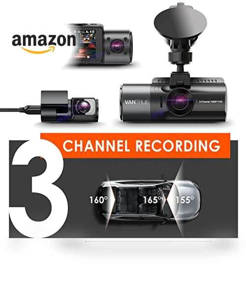 VANTRUE N4 3 Channel Dash Cam - 4K+1080P Dual Channel, 1440P+1080P+1080P Front Inside Rear, IR Night Vision