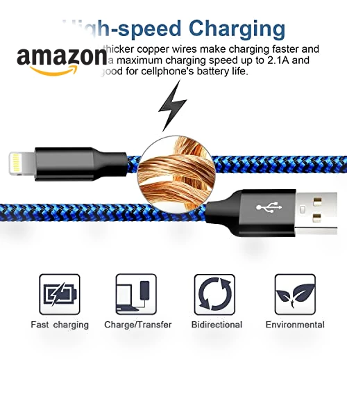 Ever been stuck with a flimsy charging cable that gives up on you at the worst possible moment? Not with this 5 Pack Lightning Charging Cable. It's like the superhero of cables—tough, reliable, and ready for action. Each one's wrapped in nylon braided fiber (because who has time for untangling knots?), built to last longer than your last diet resolution. And yes, it's got that Apple MFi certification, so you know it charges fast (up to 2.1A, to be exact) and transfers data quicker than you can say '480Mbps'.