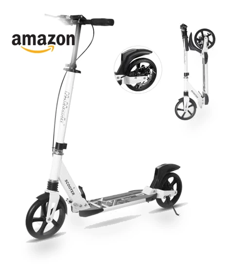 Nattork 152300 Adjustable Height Folding Kick Scooter with Large Sturdy Wheels: Disc-Brake Equipped for efficient stopping power