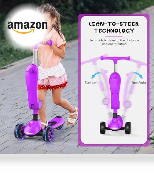 Now, let’s talk about the wheels—because what’s a scooter without a bit of flash? These babies light up in a rainbow of colors as they spin, no batteries needed (because who’s got time for that?). The deck is extra-wide and anti-slip, because stability is key when you’re dealing with mini daredevils. And the lean-to-steer tech? It’s like the scooter reads their mind, helping them nail those turns while secretly teaching balance and coordination.