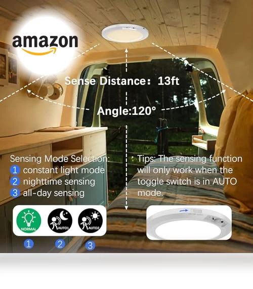 Koopala KP-DY102-2PCS-W-US Auto Motion Sensor LED Ceiling Lights: 3 Sensing Modes (constant light, nighttime sensing, all-day sensing)