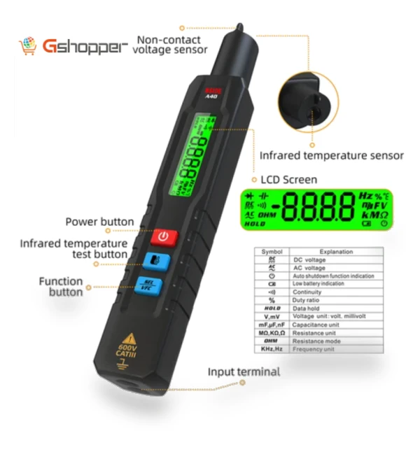 - Features: Infrared Temperature Testing, Non-Contact Electric Volt Pen, AC/DC Dual Mode, NCV VFC Alarm