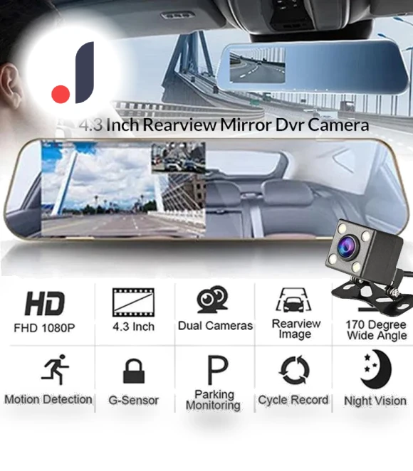 Ever wished your car could keep an eye out for you? Meet our Car DVR with Rearview Mirror—it's like having a co-pilot that never blinks. The 4.3-inch screen isn't just big; it's your window to crystal-clear views, rain or shine. And with its dual lens setup, it's got eyes in the back of its head (and the front, obviously), capturing everything from reckless drivers to that parking job you're weirdly proud of. The rearview camera turns reversing into a breeze, and with 1080p recording, even license plates aren't safe from its sharp gaze. Plus, the double recording feature means it's watching the road and your passengers—because let's face it, sometimes the real drama is inside the car. Safety, security, and maybe a little entertainment, all in one sleek package.