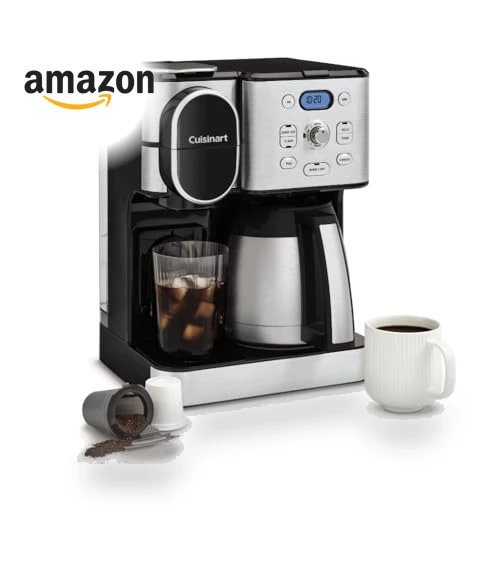 Whether you're team drip or pod, craving something hot or iced, or just need a quick single cup versus a full carafe for your crew—the Cuisinart 2-in-1 Coffeemaker has got you covered. Seriously, this isn't just another coffeemaker; it's like having a barista in your kitchen that doesn't judge you for your third cup before noon. With its nifty 10-cup insulated carafe and single-serve option all in one, it's the Swiss Army knife of coffee brewing. And guess what? Thanks to Extreme Brew tech, you can get that full pot ready 25% faster (because who has time to wait?). Fancy some customization? Set it to start brewing before you even crawl out of bed, hit pause if you can't wait (Brew Pause™ to the rescue), or let it shut off automatically so you don't have to worry. Oh, and for those who like their coffee bold—there's a setting for that too. Single-serve? No problem. Choose from 5 cup sizes, use any pod (yes, even Keurig K-Cup®), or go green with the reusable HomeBarista™ filter. And for those scorching summer days? Brew over ice for a refreshing kick. Coffee, exactly how you like it, whenever you want it. Now that's what we call a morning win.