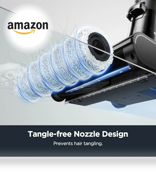 Oh, and that motorized brush? It’s like a superhero with a lush comb and scraper, fighting off clogs and picking up stray hairs like it’s no big deal. You’ll get a solid 25 minutes of cordless freedom, with an LED display that keeps you in the loop on modes and battery life—no guessing games here. Plus, with 7000 Pa of suction power, it’s ready to take on both wet spills and dry debris in one go, drying floors fast with a 90% water return rate. Because who has time to wait around?