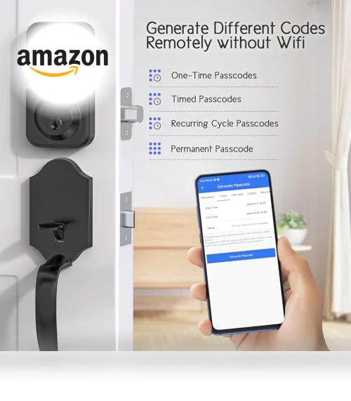 Ever find yourself fumbling for keys at the door? The Deadbolt Smart Lock with Handle Set is here to save the day—and your sanity. It's not just smart; it's practically genius, offering a smorgasbord of ways to get in: tap an app, punch in a code, swipe a fingerprint, wave a key fob, or go old-school with a mechanical key. (Because sometimes, tech fails, and that's okay.) Need to let someone in while you're out? No sweat. Whip up one-time, timed, or recurring codes faster than you can say 'Who's there?'—perfect for pizza deliveries, your forgetful aunt, or the dog walker.