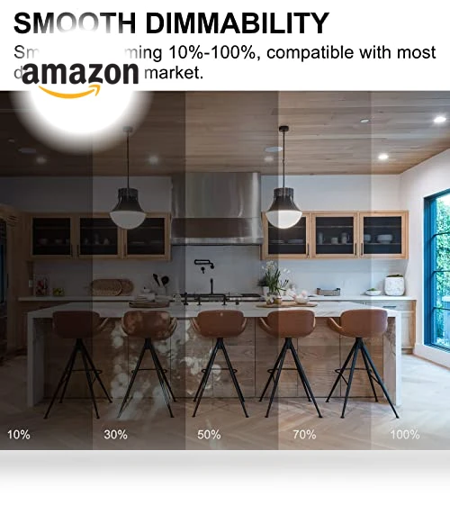 - Seamless dimming capabilities from 10%-100%. Compatible with most dimmers in the market. Ideal for kitchen, living room, bedroom, bathroom and other damp location