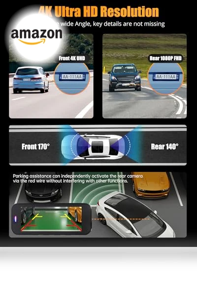 lensuge A4Q-F3J Dual Dash Camera for Cars: 4K+1080P dual recording