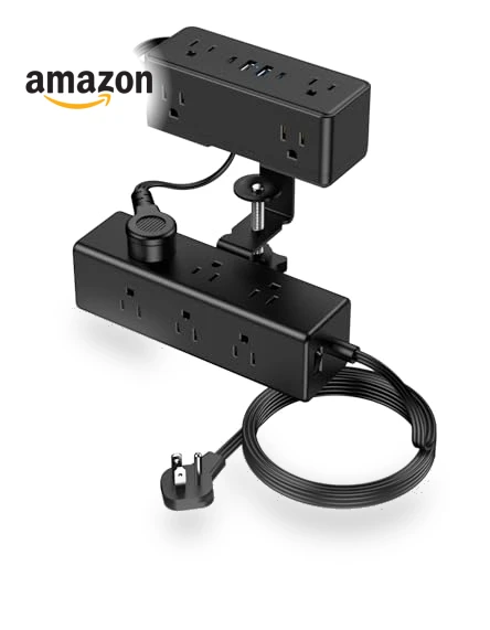 Ever found yourself playing a never-ending game of 'hunt the outlet' under your desk? Say hello to this sleek desktop-mounted power strip, your new best friend for keeping things tidy. It's like having two power strips in one—perfect for tackling both desktop gadgets and those pesky under-desk charging needs without turning your workspace into a spaghetti junction of cords. Whether you're at home or in the office, it's got you covered with a mix of outlets and ports: think 1 PD 20W USB-C (because fast charging is life), 1 QC3.0 USB-A, plus your standard 10W USB-A and USB-C ports, and, oh yeah, 15 AC outlets because why not? Just clamp it securely to your desk (it's got a 2.75in grip, so it's not going anywhere) and kiss goodbye to floor-level outlet scavenger hunts.