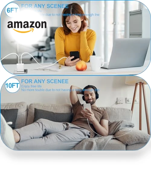 Ever been stuck with a phone that's about to die, and all you've got is that snail-paced 5W charger? Say hello to the 20W Dual Port Fast Charger Block 2-Pack—your new best friend. It's not just fast; it's 'blink-and-you'll-miss-it' fast, thanks to PD/QC3.0 tech that's three times quicker than those old-school adapters. And because we know you're always on the move, we've thrown in both a 6FT and a 10FT MFi-certified braided cable. Whether you're lounging in bed or stuck in traffic, you're covered. Plus, with two compact chargers, your home and office setups are sorted. Charge two gadgets at once without breaking a sweat (or overheating, thanks to the Smart IC). And because we're not messing around with safety, it's built like a tank—military-grade protection, surge protection, voltage control, and temperature monitoring, all certified by ETL/FCC/ROHS. Works with pretty much everything: iPhone 14 down to the 8+, iPad Pro/Air/Mini, AirPods Pro, and any USB-C device you've got. (Yes, even that weird gadget you bought on a whim.)