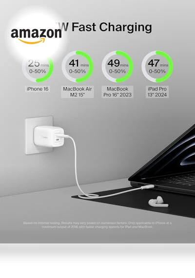 Ever find yourself playing the 'which device gets to charge first' game? The Belkin BoostCharge Pro 65W Dual USB-C Charger is here to end that nonsense. Thanks to its PPS technology, it's like having a smart negotiator inside your charger, figuring out the perfect power deal for whatever gadget you plug in. And with USB-C Power Delivery 3.0 and PPS technologies teaming up, your devices get juiced up fast, safe, and just right—no guesswork needed. Oh, and it comes with a USB-C to USB-C cable because, let's be honest, we've all lost at least three of those. Whether it's your MacBook Pro, iPhone, Galaxy, or that tablet you swear you'll use more, this charger's got your back (and a 2-year warranty to prove it).