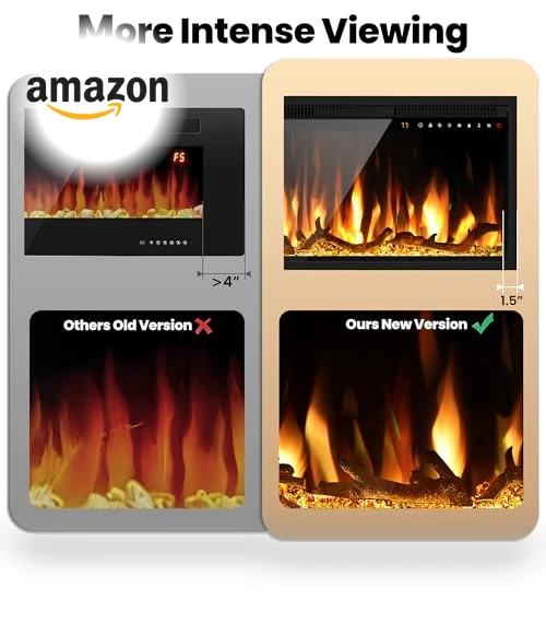 Meet the 36 Inch Electric Fireplace Heater from Riseon—where style shakes hands with practicality, making it a no-brainer for today's homes. Its ultra-narrow bezel isn't just for show; it's your ticket to a sleek, almost magical mounting effect, whether you're tucking it into the wall or letting it stand proud on top. Fancy a change of scenery? Swap between realistic logs and crystal clear cubes for those 'just right' vibes, and dial in your mood with 13 flame colors and 5 brightness levels. (Yes, 13. Because 12 was too mainstream.)