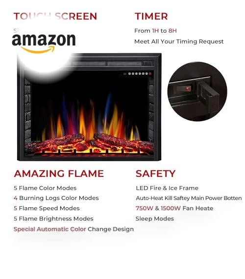 đ Customizable Features: Want your flames blue? Slow? Barely there? Go ahead, tweak the color, speed, and brightness using the touch screen or remote. Itâs like mood lighting, but with the bonus of heat. And for those who canât decide, the automatic color cycle is like a disco for your fireplace. Plus, sleep mode means it wonât keep you upâunless youâre mesmerized by the colors.