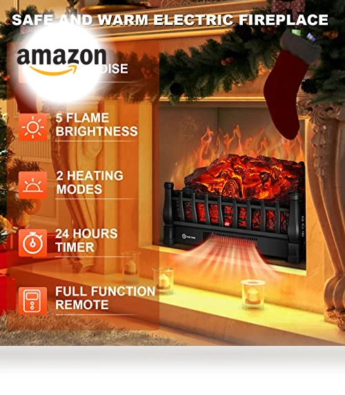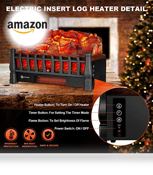 Alpaca IH-2093 Electric Fireplace Logs Inserts Heater: Realistic 3D fake flame