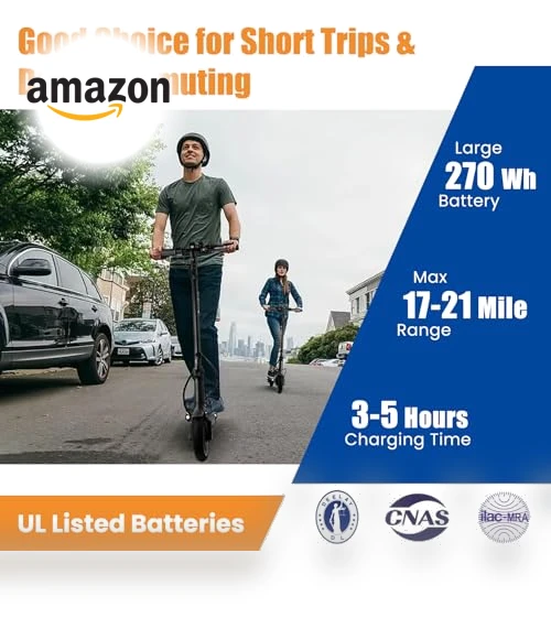 ๐ Long-Lasting Battery: With a range of 17-21 miles on a single charge, this scooter's got your back for those daily commutes. It's like the Energizer Bunny, but cooler and with wheels.
