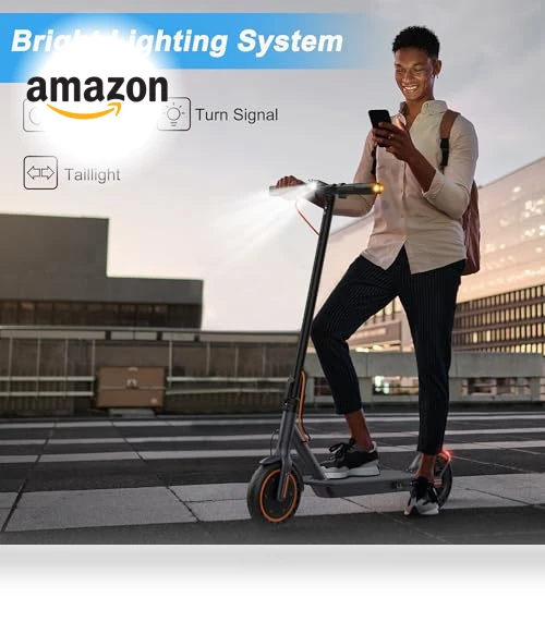 • SAFETY FIRST: The commuting electric scooter equipped with a turn signals, headlight and taillight, this e scooter is perfect for you riding at high speeds or during nighttime. In same time, it adopts a double braking system (EABS + drum brake) to ensure your safety