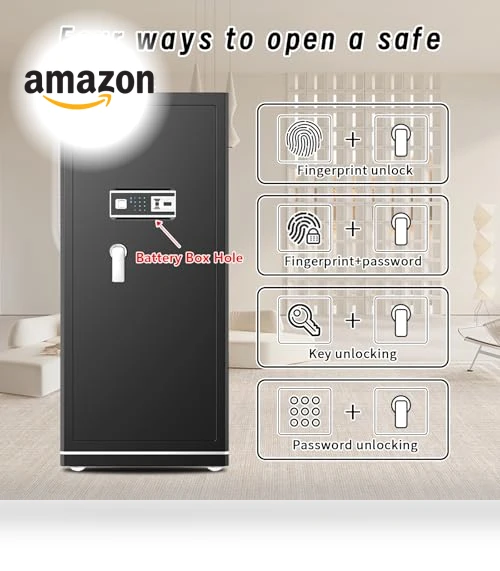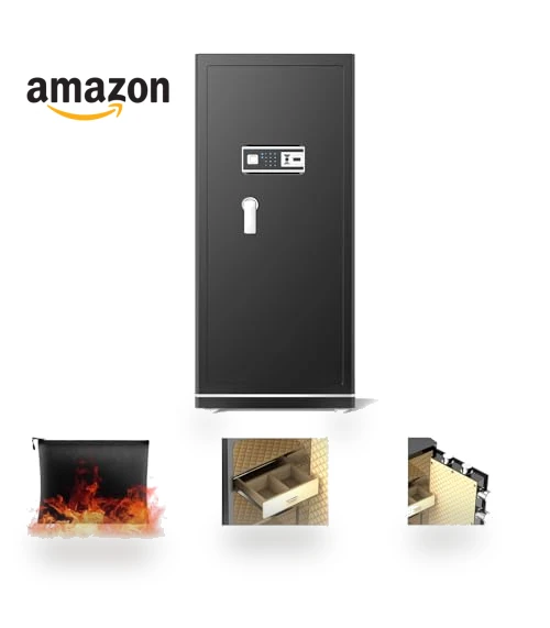Meet the FABAO Extra Large Home Safe—your new fortress. It's not just heavy (we're talking a whopping 200 lbs), it's built like a tank with all-steel construction. Good luck to anyone trying to walk off with this behemoth. And getting in? You've got options: fingerprint, password, or good old-fashioned key. Because who doesn't love choices? But try anything funny, and the tamper and motion sensitive alarm will have something to say about it. Plus, with remote monitoring via the Tuya APP, you can keep an eye on your treasures from your couch or halfway around the world. Need space? It's got plenty, thanks to a large capacity and a handy built-in drawer. And whether you want it bolted to the wall or on the move, those universal wheels have got you covered. Flexibility and security? Now that's a combo.