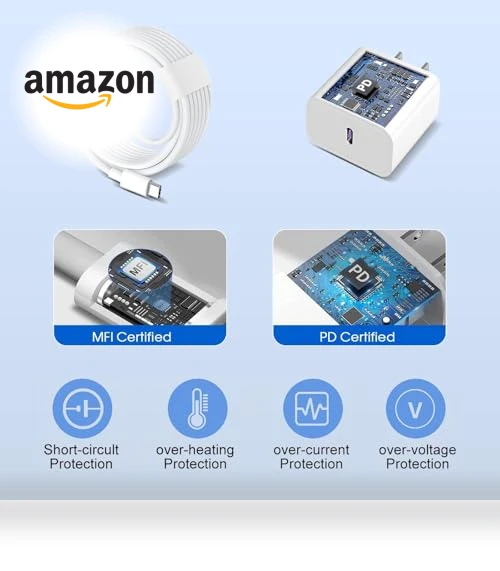 - Includes 2-Pack 6ft USB C to C Cable and 20w USB-C PD wall charger