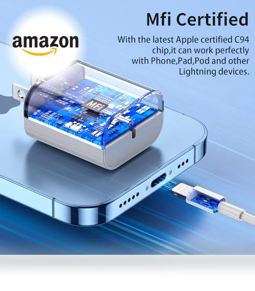 CQDKWG G06-PD1328A Fast Charging USB C Wall Charger with Lightning Cable: MFi Certified for flawless compatibility