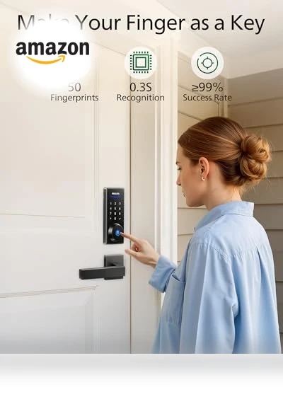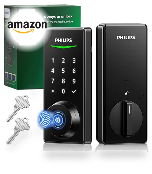 Say goodbye to fumbling for keys with the Philips Fingerprint Keyless Entry Door Lock—it's like having a bouncer for your front door, but way more polite. This smart lock doesn't just recognize your fingerprint; it does it in a blink (0.3 seconds, to be exact), making sure you're inside before you even realize you've arrived. And for those times when you've got friends crashing over or the dog walker popping in? Unlimited one-time PIN codes have got you covered.