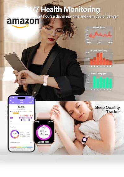- Health Features: Heart rate monitor, Blood oxygen monitor, Sleep tracker, Stress monitor, Female menstrual cycle tracker