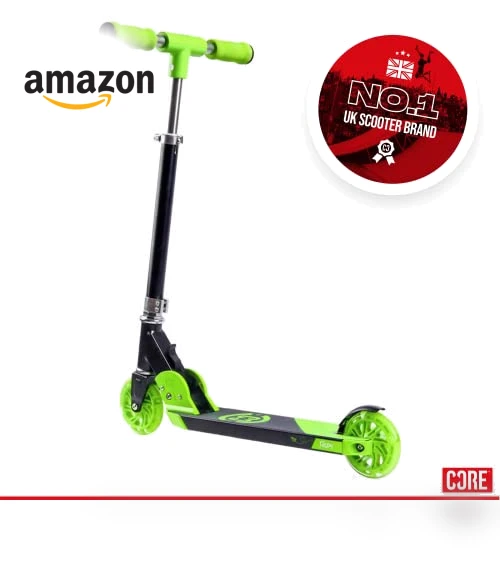 Meet the CORE Foldy Kids Scooter—your kid's next favorite ride that doesn't skimp on safety or fun. With adjustable handlebars that grow with your child, this scooter is like the jeans they'll outgrow but way more durable. And those LED light-up wheels? Not just for show; they light up the path (and your kid's face) when the sun starts to dip.