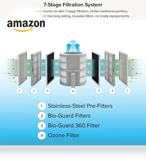 Ever walked into a room and thought, 'Wow, it's stuffy in here'? The Nuwave Forever Smart Air Purifier is here to kick indoor air pollution to the curb. No more fretting over filter replacements—thanks to its Never Replace Air Filter System, it's like the gift that keeps on giving (minus the awkward regifting). And with its Patented 7-Stage Filtration, it snags everything from smoke to pet dander, even those pesky particles as tiny as 0.1 microns. Breathe easy knowing your air is cleaner than a whistle.