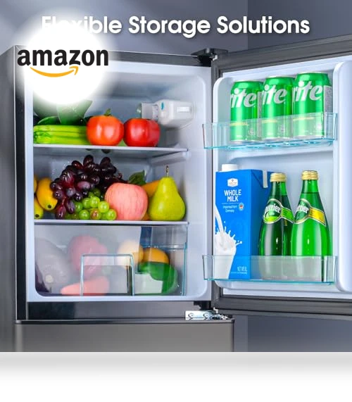 Organization freaks, rejoice! The dual-door design keeps your fridge and freezer lives separate but equal. Inside, you'll find adjustable glass shelves (because life changes), crisper drawers for your veggies (to keep them crisp, not sad), and door racks for all those condiments you swear you'll use someday.