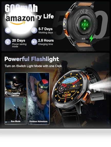 LIGE DM1-E-XY-US-JQ GPS Military Smart Watch for Men - AMOLED, 100+ Sports Modes, IP68 Waterproof