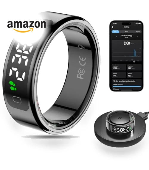 Meet the Health Tracker Smart Ring—your new favorite gadget that keeps tabs on everything from your heart rate to how well you're sleeping (or not, no judgment here). It's got this slick LED display that shows you the time, your step count, and even your heart rate, so you can leave your phone in your pocket where it belongs. Crafted from high-quality stainless steel, this ring isn't just tough; it's also a looker, perfect for turning heads at the gym or a night out. And yes, it's waterproof, because life happens, and so do accidental dips in the pool.