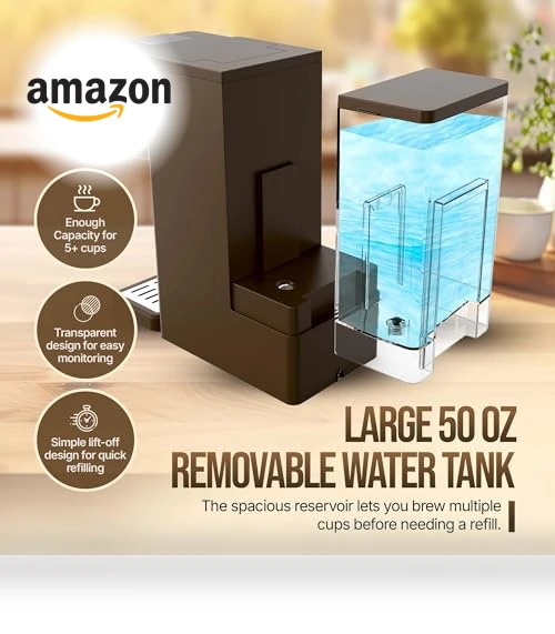 With a 50 oz water tank, you can brew enough to keep the whole office (or just you, no judgment here) caffeinated without constantly running to the sink. And when it's time to refill? Just pop it off, fill it up, and snap it back on. Easy peasy.