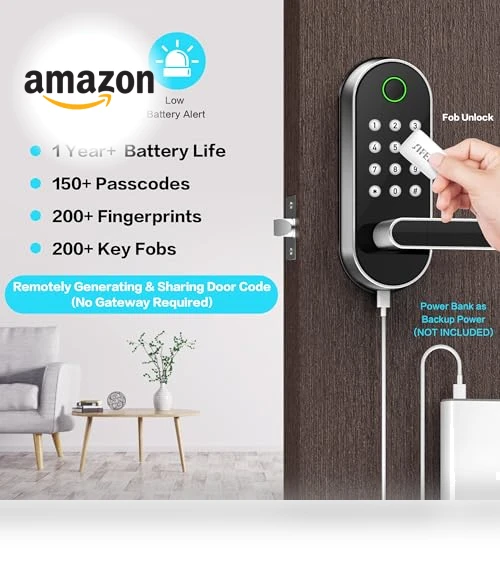 - 6-in-1 Keyless Entry: Fingerprint, Passcode, Wireless Key Fob, Card, Smartphone, Key