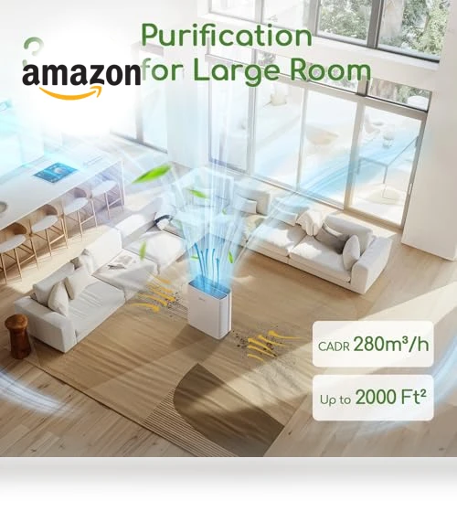 Afloia EUROPA Large Room Air Purifier with PM2.5 Display: Faster air circulation with CADR 280/m³