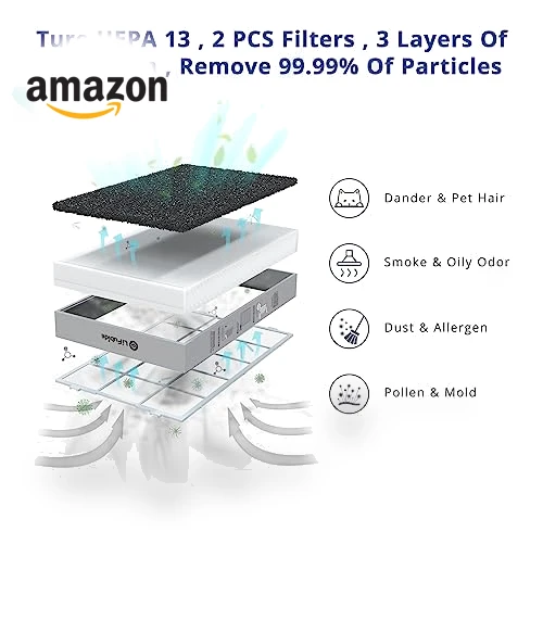 Meet the Large Room Air Purifier from Lifubide—your new best friend for breathing easy in spaces up to a whopping 4555 Sq.Ft. (Yeah, that's bigger than some apartments.) It's armed with a H13 True HEPA filter that doesn't just promise clean air; it delivers, snagging 99.99% of those pesky particles down to 0.01 microns. Pollen, dust, pet dander? Gone. And with noise levels whispering at 24dB, it won't disturb your beauty sleep or that important Zoom call.